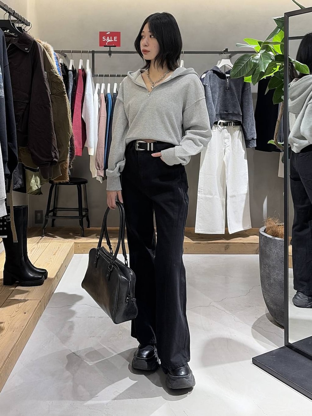 トップス ハーフZIPのパーカーで丈感短めなので スタイルアップができます! 腕周りも余裕があるので、中に薄めのハイネックや シャツ合わせでも大丈夫👍 ボトムス PAGEBOYらしいちょっと珍しいデザイン ハイウエストで履くので、細見え・美脚効果抜群✨️ こちらもMサイズ着用! ジャストで履くならS、丈感ほしいならMな感じでした✨️ サイズも4サイズXSから選べるので、低身長さんや高身長さんでも選べるサイズ感です! 158でMを履いて、おしりと太ももの部分に少し余裕がありました‼️丈感的には丁度いい丈感👍