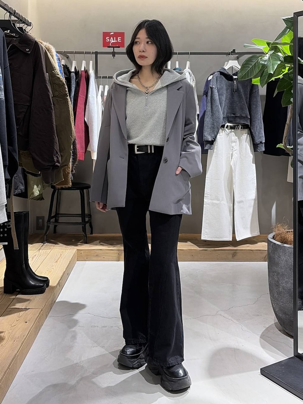 トップス ハーフZIPのパーカーで丈感短めなので スタイルアップができます! 腕周りも余裕があるので、中に薄めのハイネックや シャツ合わせでも大丈夫👍 ジャケット サイズ感が選べるジャケット‼️ そして、袖のところがスリットになる2WAY使用! シンプルに着られるのと、雰囲気変えたいなって 時にも袖のボタンを取るだけでもガラッと変わります‼️ 後ろも絞れるタイプで、絞るとクビレが作れて スタイリッシュな印象になります✨️✨️ オケージョンなどに使っていただいてもいいですし、 それが終わったあとでもデニムなどに合わせて 普段着としても使えるジャケットです! ボトムス PAGEBOYらしいちょっと珍しいデザイン ハイウエストで履くので、細見え・美脚効果抜群✨️ こちらもMサイズ着用! ジャストで履くならS、丈感ほしいならMな感じでした✨️ サイズも4サイズXSから選べるので、低身長さんや高身長さんでも選べるサイズ感です! 158でMを履いて、おしりと太ももの部分に少し余裕がありました‼️丈感的には丁度いい丈感👍