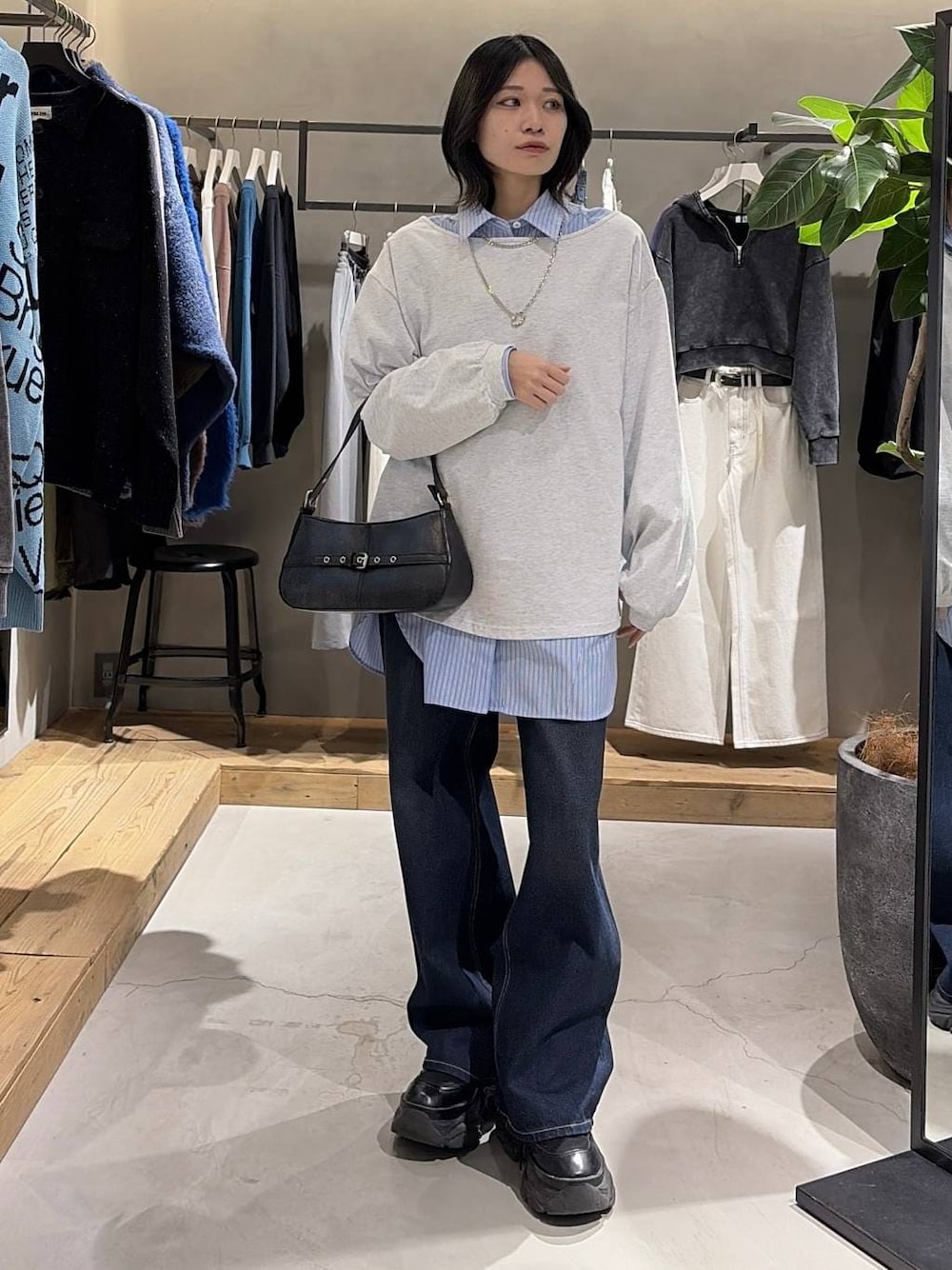 トップス ルーズネックTシャツ! ルーズに首周りがあいているのでスッキリ見せは もちろん、ワンショルにもできて雰囲気がガラッと 可愛いTシャツです‼️ 私は首あきが苦手なのでシャツをレイヤードした スタイルにしてみました✨️✨️ 腕周りゆったりなので、シャツ入れても大丈夫でした☺️ ボトムス 形にこだわったジーンズ👖 細見えはもちろんハイウエストなので 美脚効果も抜群😎👍 158でMサイズ履いた感じ、丈感は長めで 太ももやおしりの締め付け感もなく着用出来ました! 丈感や、太ももの緩さがもうちょっと欲しいと思ったら ワンサイズ上のサイズがオススメです‼️