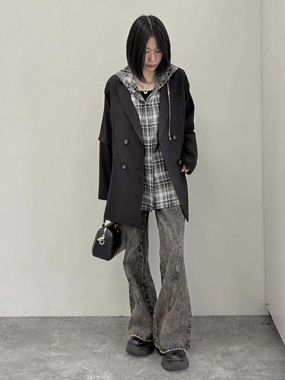 シアーチェックフーディ サラッとした素材感で、ゆったり着れるフーディ 今の時期ぐらいは中にTシャツと合わせたり また気温が上がれば、キャミやタンクトップ と合わせたりとシアー素材でも、長く使って いだけます! 身幅もあるので体のラインは出にくいです! ジャケット シーズン長く使って貰えるジャケット! 腕の部分はボタンで取り外しが可能✨️ 半袖にもなるので夏でもシアートップスやキャミと 一緒に着ていただけます! サイズもSMあるので、スッキリめかゆったりめが 選べるサイズ感です! ボトムス PAGEBOYらしいちょっと珍しいデザインに新色登場︎💕︎ ハイウエストで履くので、細見え・美脚効果抜群✨️ こちらもMサイズ着用! ジャストで履くならS、丈感ほしいならMな感じでした✨️ サイズも4サイズXSから選べるので、低身長さんや高身長さんでも選べるサイズ感です! 158でMを履いて、おしりと太ももの部分に少し余裕がありました‼️丈感的には丁度いい丈感👍