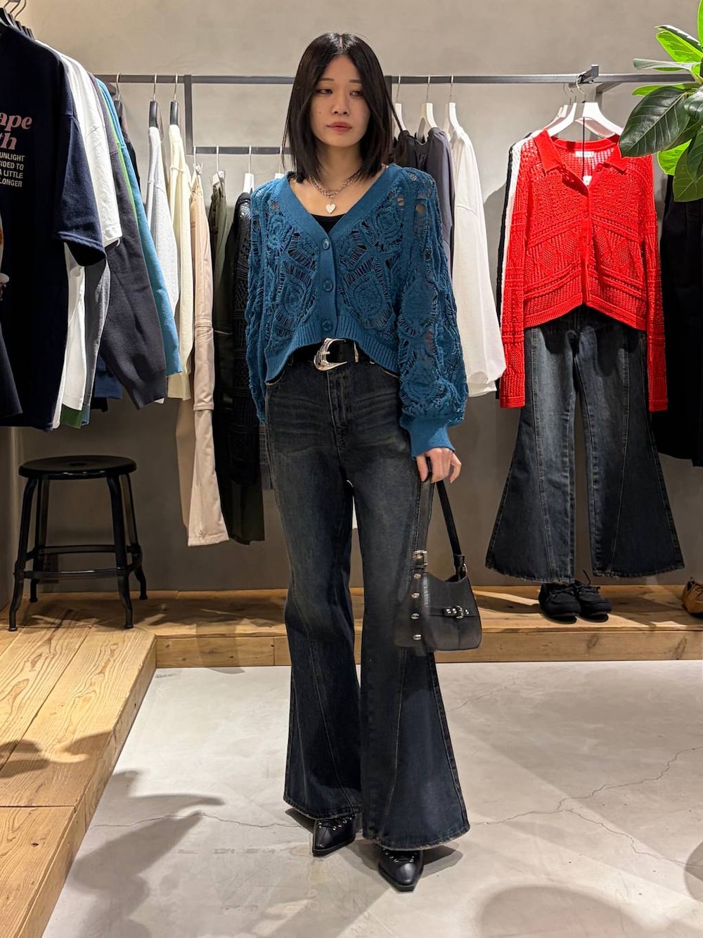 トップス リーフ柄のカーディガンに新色登場✨️ ざっくりな網目で通気性がアリ、インナーを変えたら 今から長く使えます✨️ 袖感の溜まる感じも可愛い🫶 肌見せが苦手な方でも中に薄手のロンTを 着ていただければ問題無し😎👍 ボトムス PAGEBOYらしいちょっと珍しいデザイン ハイウエストで履くので、細見え・美脚効果抜群✨️ こちらもMサイズ着用! ジャストで履くならS、丈感ほしいならMな感じでした✨️ サイズも4サイズXSから選べるので、低身長さんや高身長さんでも選べるサイズ感です! 158でMを履いて、おしりと太ももの部分に少し余裕がありました‼️丈感的には丁度いい丈感👍
