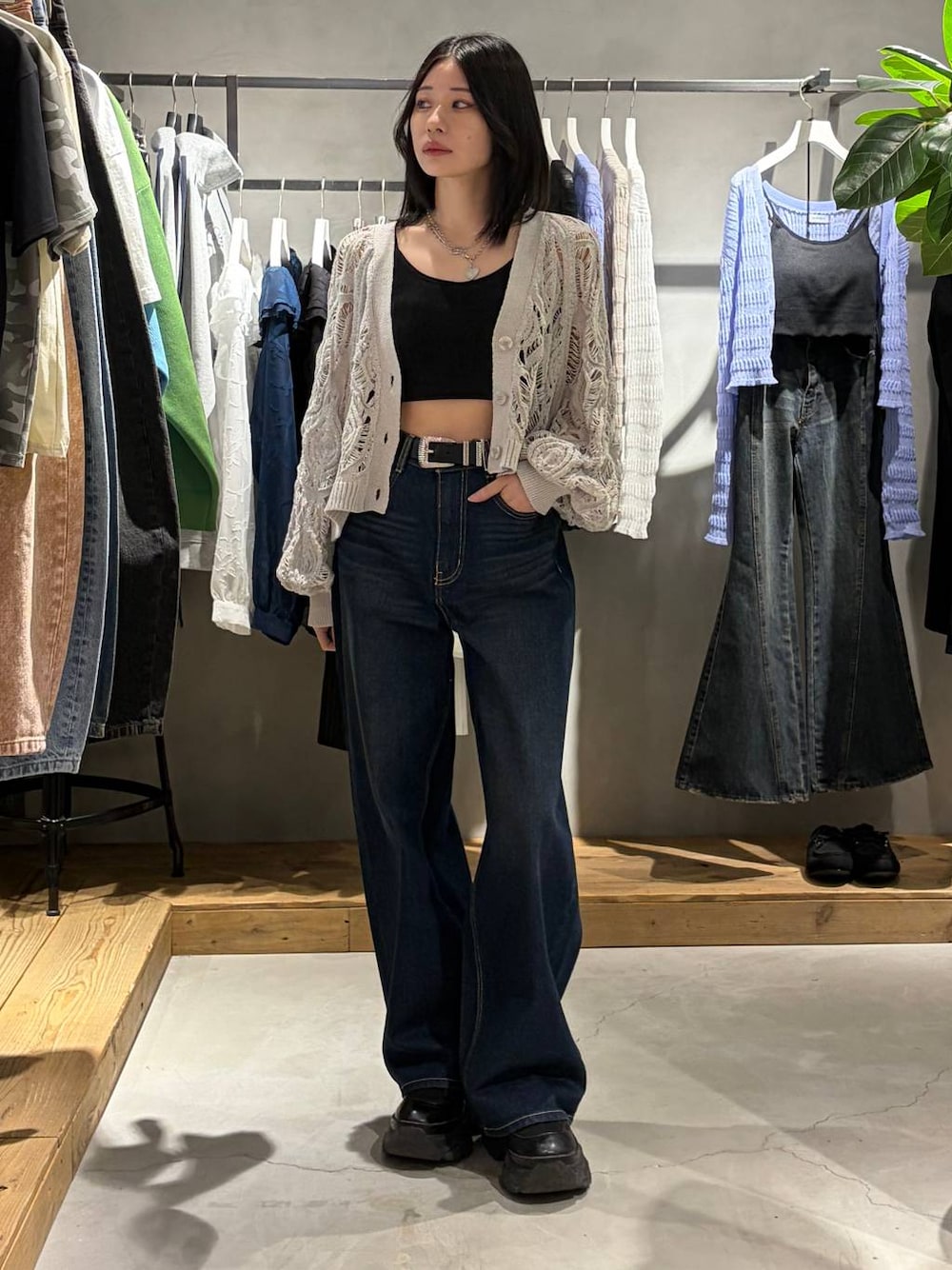 トップス ざっくりな網目で通気性がアリ、 寒暖差がある今だと薄手のロンTで合わせたり、 気温が上がってきたら、タンクトップとキャミソール など着回すと今からでも長く使えます✨️ 袖感の溜まる感じも可愛い🫶 肌見せが苦手な方でも中に薄手のロンTや半袖など 着ていただければそこまでの透け感なかったので おすすめです! 短くもなく長くもない丁度いい丈感なので スタイルアップが着るだけでできちゃう‼️ ボトムス 形にこだわったジーンズ👖 細見えはもちろんハイウエストなので 美脚効果も抜群😎👍 158でMサイズ履いた感じ、丈感は長めで 太ももやおしりの締め付け感もなく着用出来ました! 丈感や、太ももの緩さがもうちょっと欲しいと思ったら ワンサイズ上のサイズがオススメです‼️ キャミソールもフィット感があって他のキャミには 戻れない🥹 おすすめのキャミソールです! 丈感も短め長め選べるのでお好きな丈を選んで頂けます‼️
