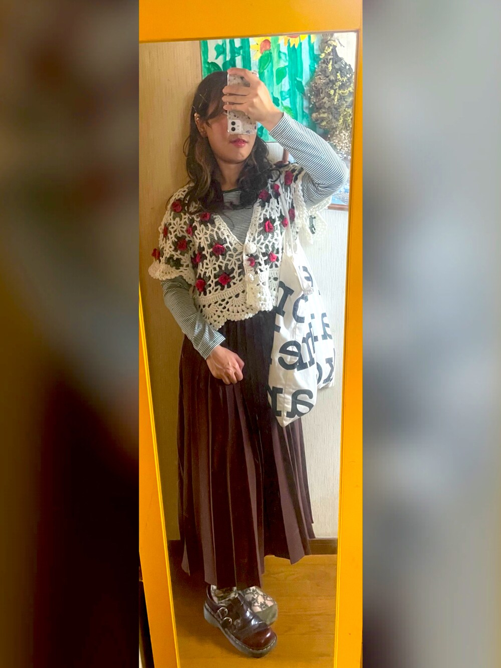 京都へお出かけの時のコーデ✨ メリーのこのカーディガン地味に暖かいのよ