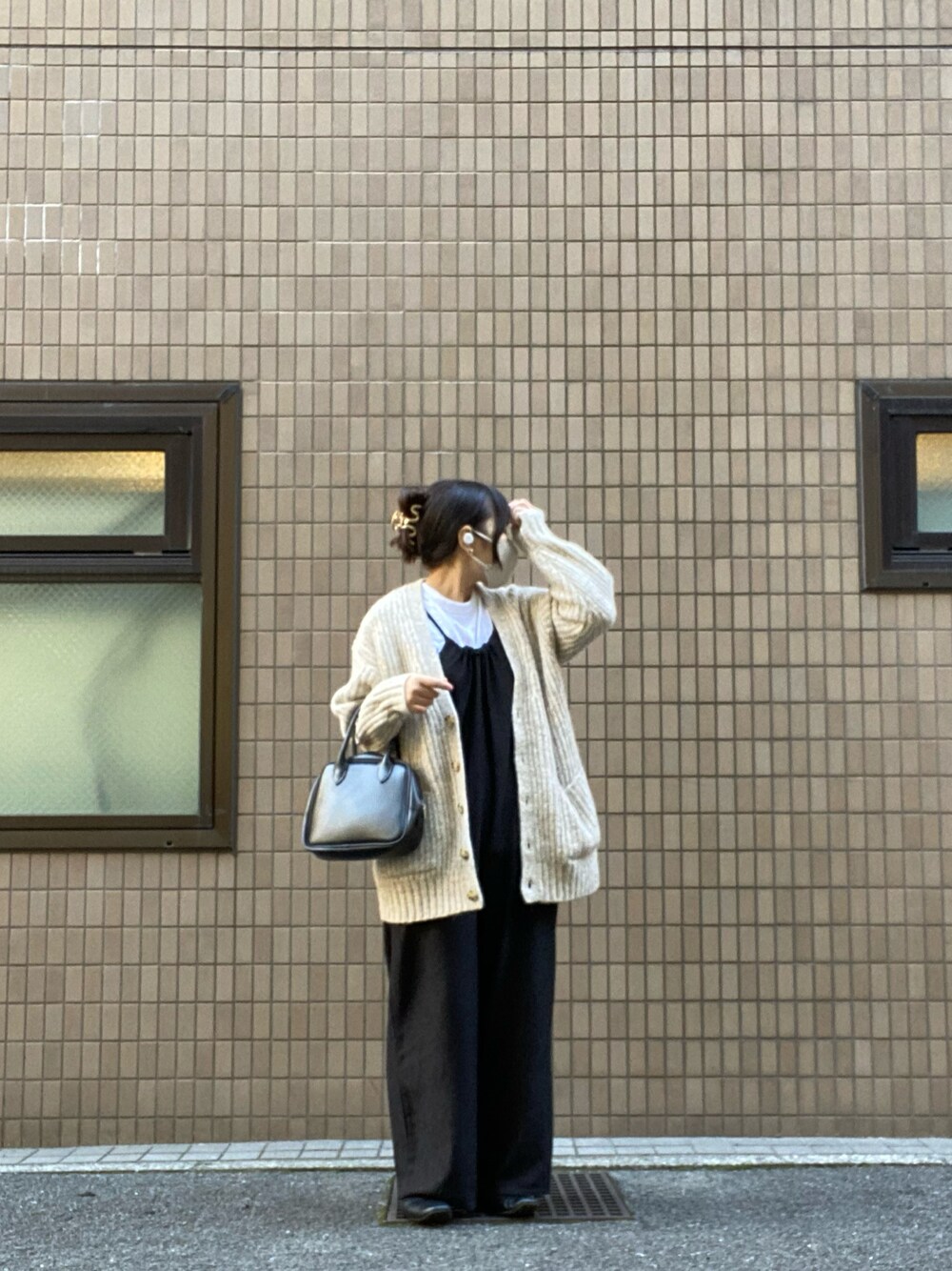 … よくあるコーデを着ました🦒 お尻まですっぽり隠れるカーディガンと楽ちんなオールインワン、インナーは白Tです🦒 今日は天気がすごく良くてめちゃ晴れでした🦒 インナーはTシャツを着ていて、カーディガンのチクチクは無く気にならなかったです🦒 よくあるコーデだけどかなり好きでした🦒 てかこのバッグ使いすぎ?使いやすくて無難なのっていつの間にかコーデに取り入れてる🦒🦒 【購入場所】 cardigan…UNIQLO shoes…GU all-in-one.bag…ZOZOTOWN