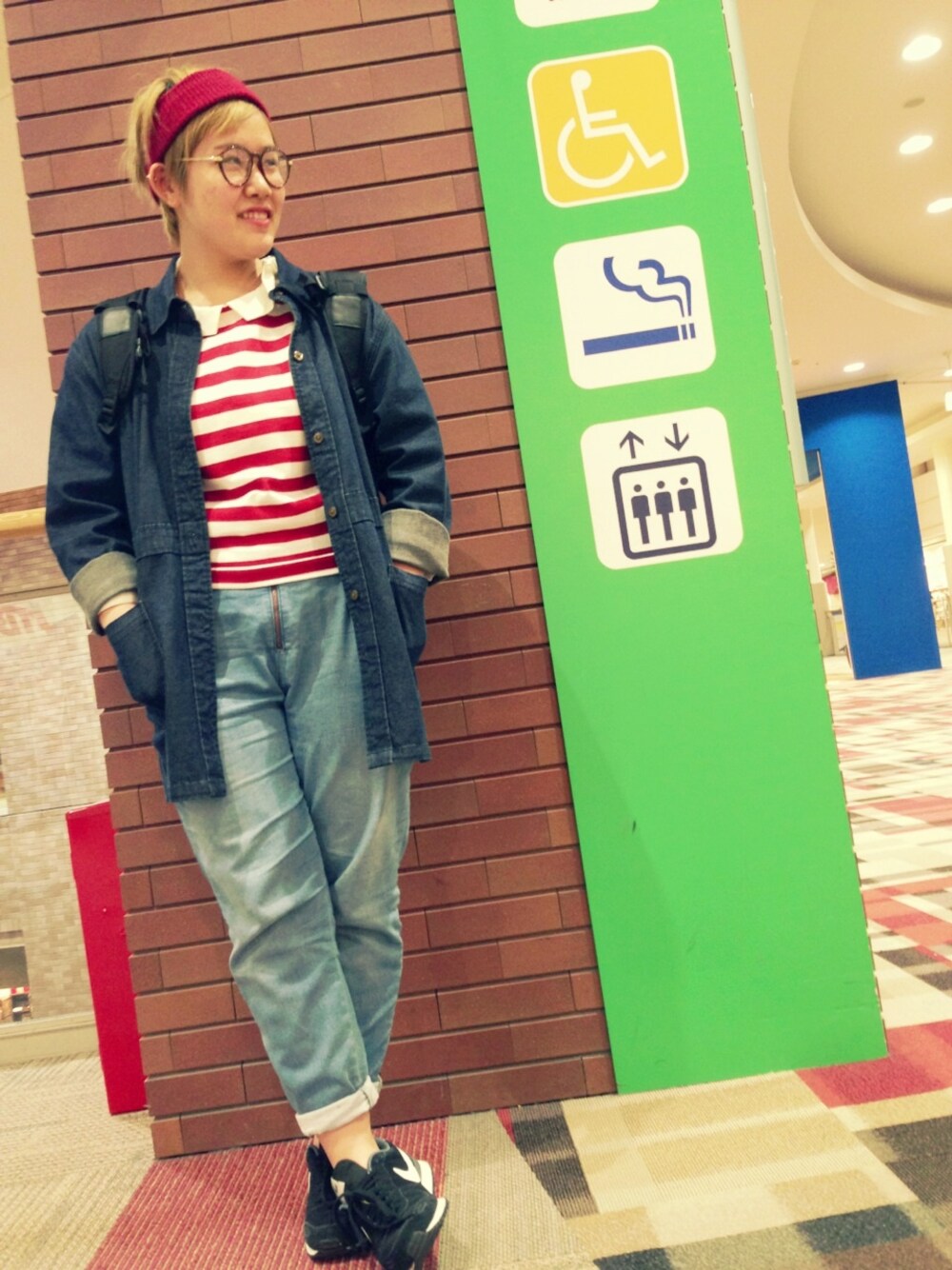 アウター : USED トップス&丸襟シャツ : LOWRYS パンツ : ZARA