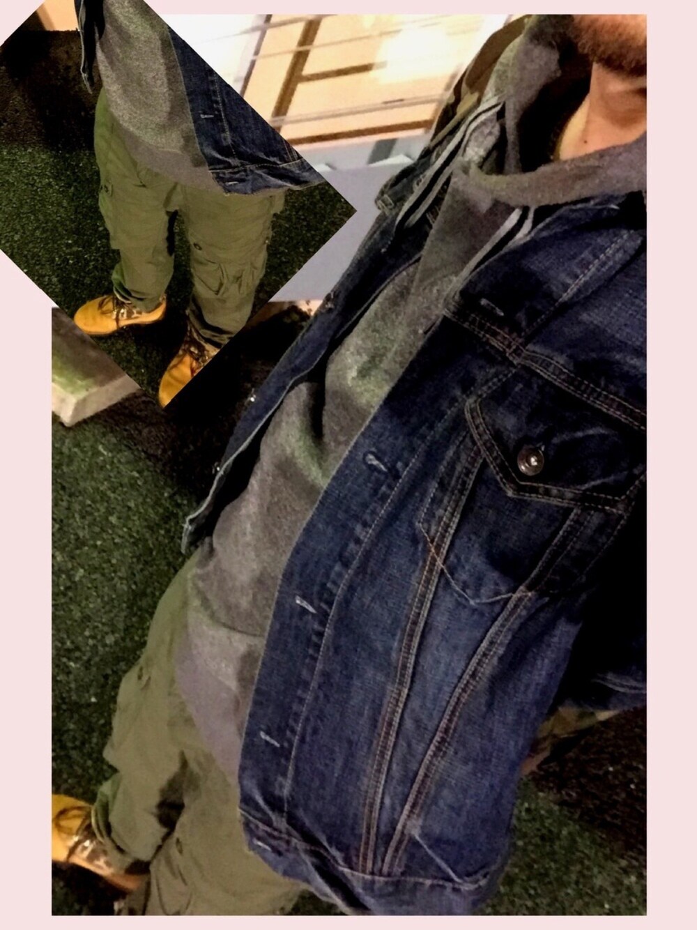 ご無沙汰してますm(_ _)m シェフのぜぶらです。 いつもご覧頂きましてありがとうございます。 少し期間が開きましたが久々の おじさんの通勤コーデです(*^^*) レストラン新規オープン準備で 夜の撮影になってしまいお見苦しいかと思いますが、よろしくお願いしますm(_ _)m 春らしくなったと思いきや、 朝晩の通勤時間はちと肌寒いので 古着のパーカーにデニムジャケット。 ボトムはミリタリーパンツに折り返しが迷彩柄のティンバーランドのイエローブーツです(*^^*) ティンバーランドの迷彩柄と アネロのリュックの迷彩を合わせてます♪ 本日も何卒お手柔らかにお願いしますm(_ _)m