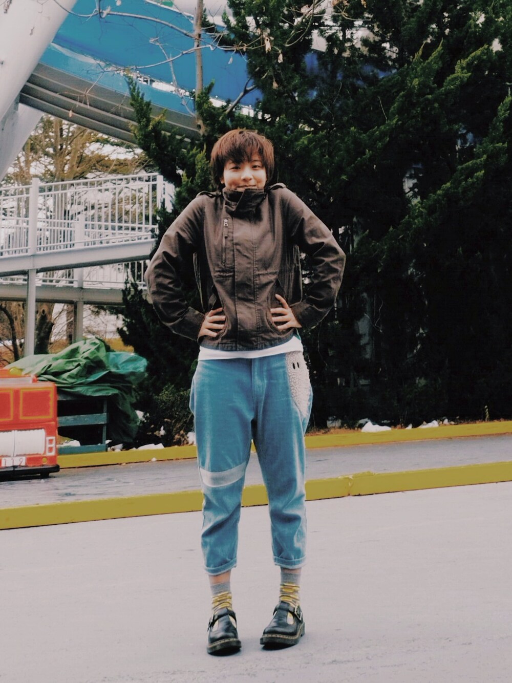 アウター、パンツ:Ne-net シューズ:Dr.Martens 靴下:happy socks T-shirt:CDG play