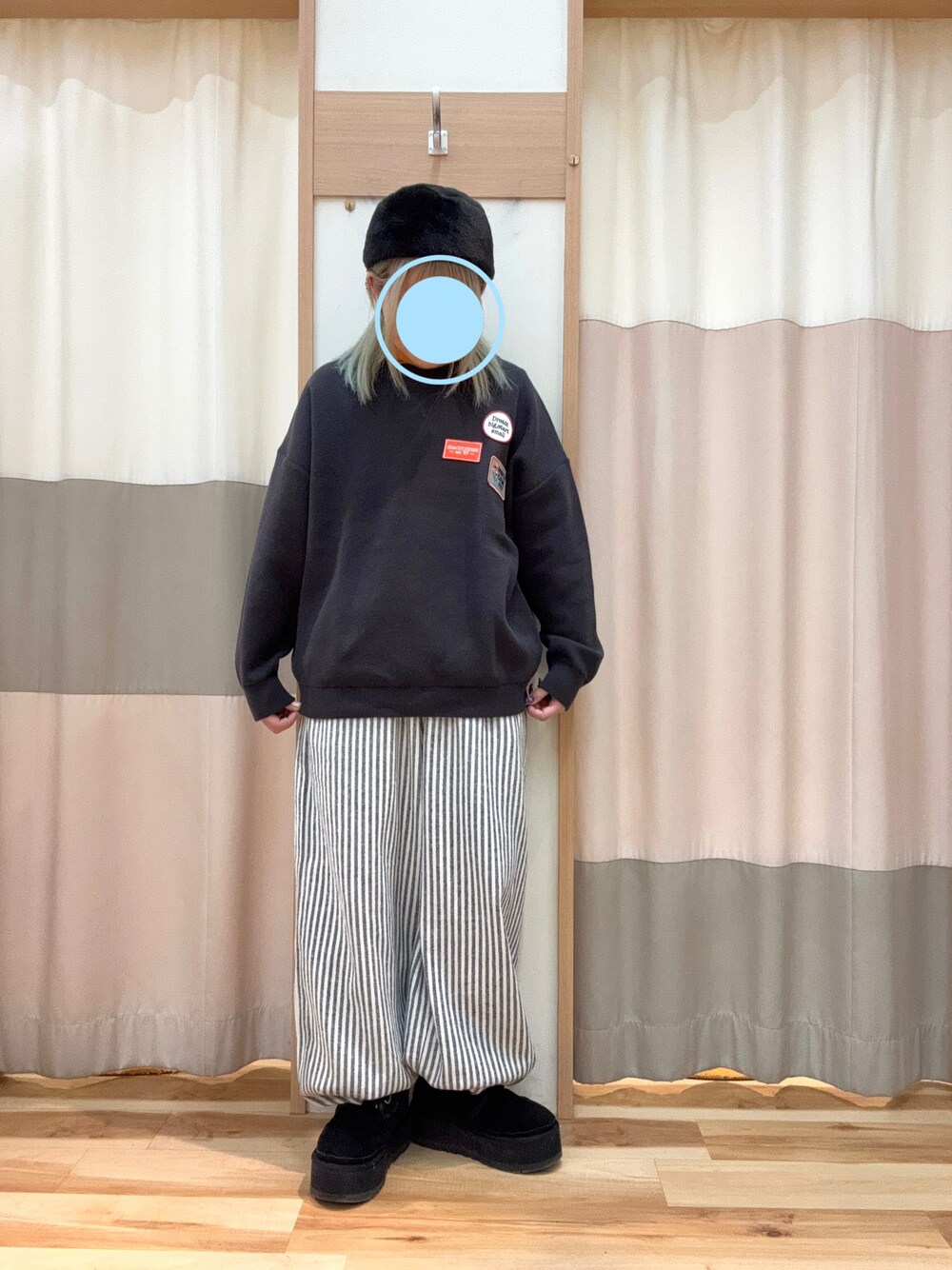 前の投稿のカジュアルワッペンニットのチャコールを着てみました🧶 色が暗くなったことですっきりと見え、ワッペンのカラフルさが目立ちます♡