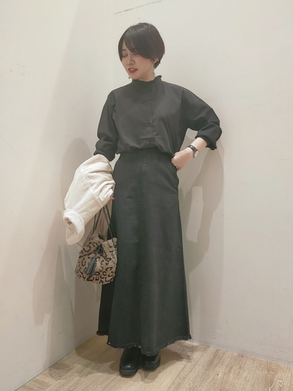 こんばんは 見て頂きありがとうございます🕊 前回投稿の羽織り無しversion スーパーロングのデニムスカートは シルエットがとても可愛いです🖤