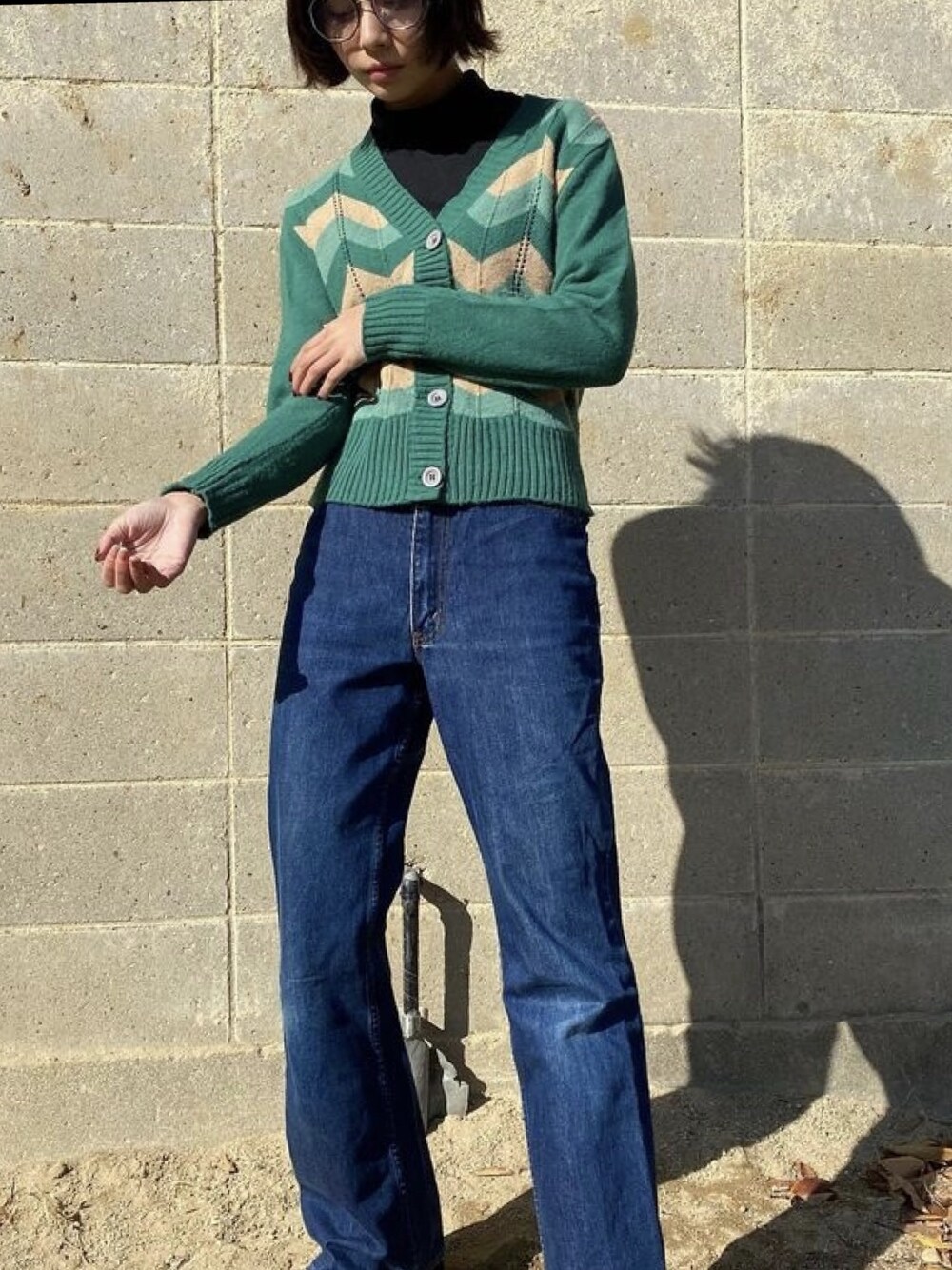オタクちゃんコーデ、 メガネとカーディガンは古着屋さん