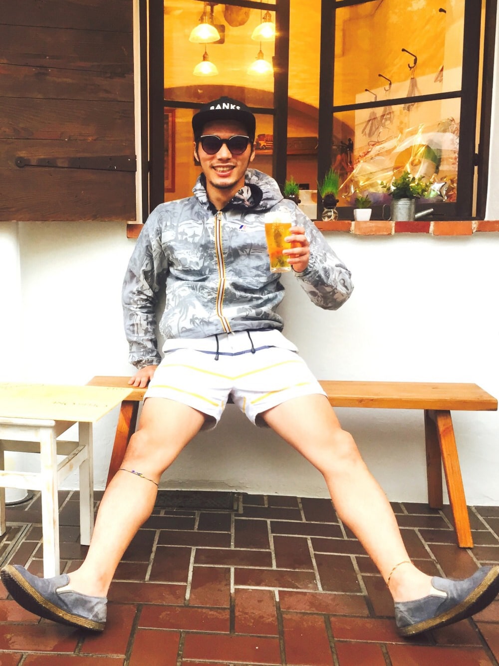 ちょっと前の雨が降った日のコーデ。 少し肌寒い日と突然の雨にはk-way × RonHermanのレインジャケットがあるのでチャリでも快適👍 サタデーズのスイムショーツで上から下まで全部濡れてもオッケーなやつですね😂 渋谷のワイン屋Timsのランチ、キューバサンドはめちゃオススメっす✨