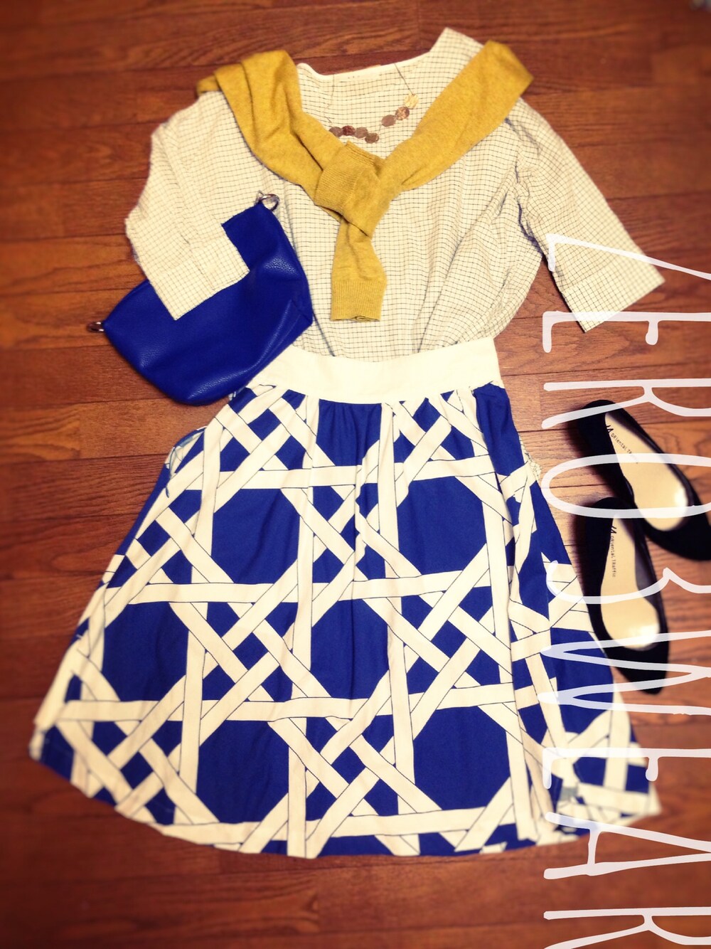 ▽ ▼ ▽ めったにしない、OLさん風。 ひっそり全身柄物。 百貨店のセールで掘り出した これもめったに買わない ne-netのスカートが主役です。
