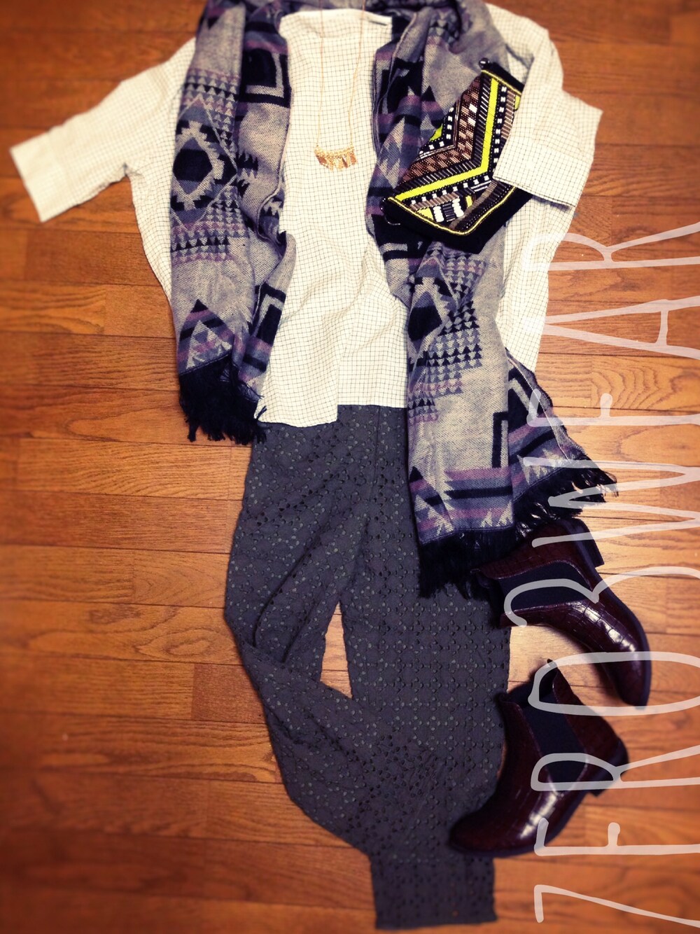 ▽ ▼ ▽ おねいさん風。 だけど、ひっそり全身、柄。 レースにチェックにネイティブ柄。 どうなの。