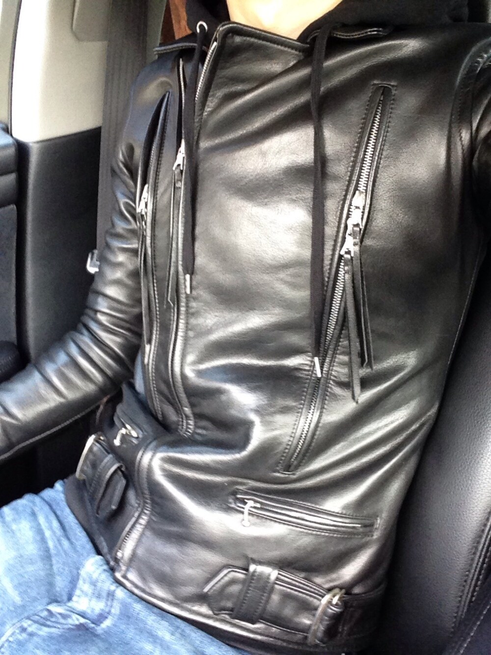 androgynousのレザーライダース ダブルをシングル仕様にするのが今の気分 drestripの前身ブランドなんだけど たぶん着てるヤツいないだろうな インナーはUNIQLOで手抜き (- -)y-~
