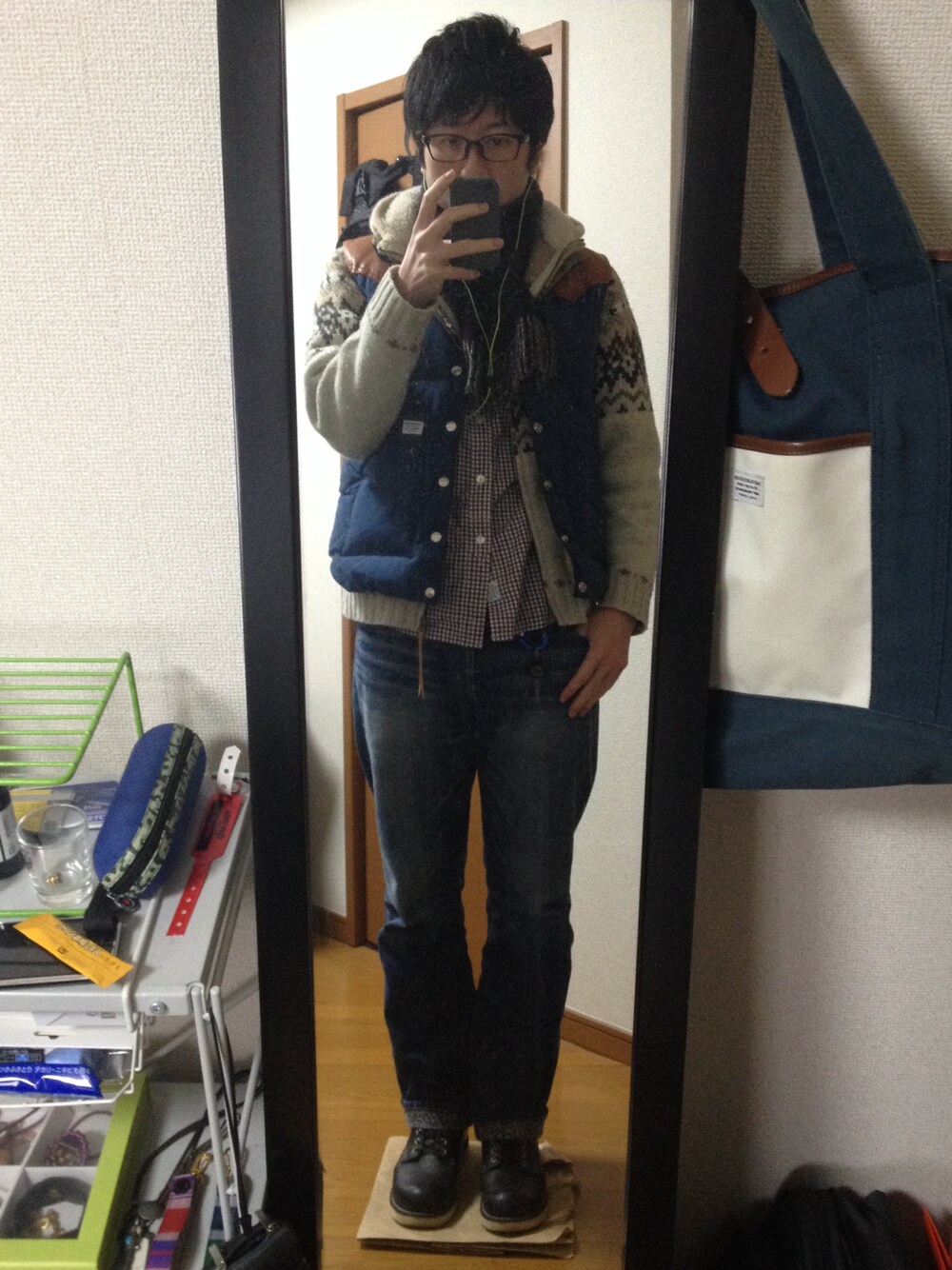 仕事用のシャツを買いに錦糸町へ。 気付いたら全身QUENCHLOUD。 今でも大好きなブランド。 このカウチンはホントに名作だと思う。 ダウンベスト:QUENCHLOUD カウチン:QUENCHLOUD ボタンダウン:QUENCHLOUD デニム:QUENCHLOUD ブーツ:REDWING