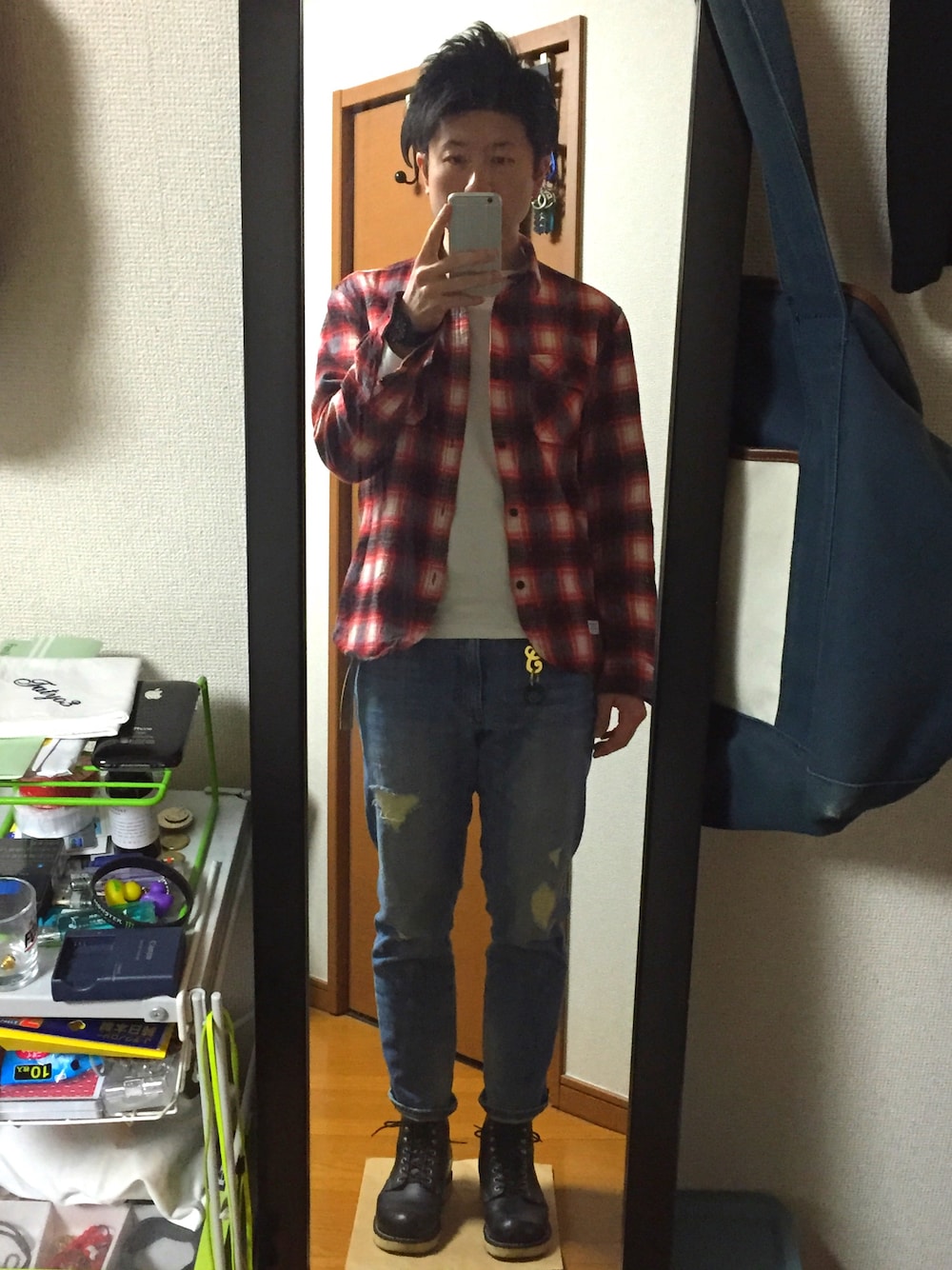 今日は新宿で飲み〜。 ユニクロルメールに赤シャツとブーツ合わせてちょいと違う印象に。 絶望的に眠い。