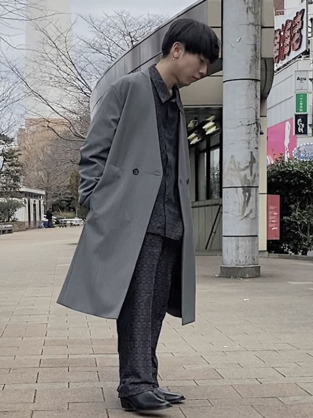 春先にサラッと羽織れる ノーカラーのダブルのコート! これ物凄くオススメです! セットアップのアウターなんかに使うのが 個人的にベスト!🔥