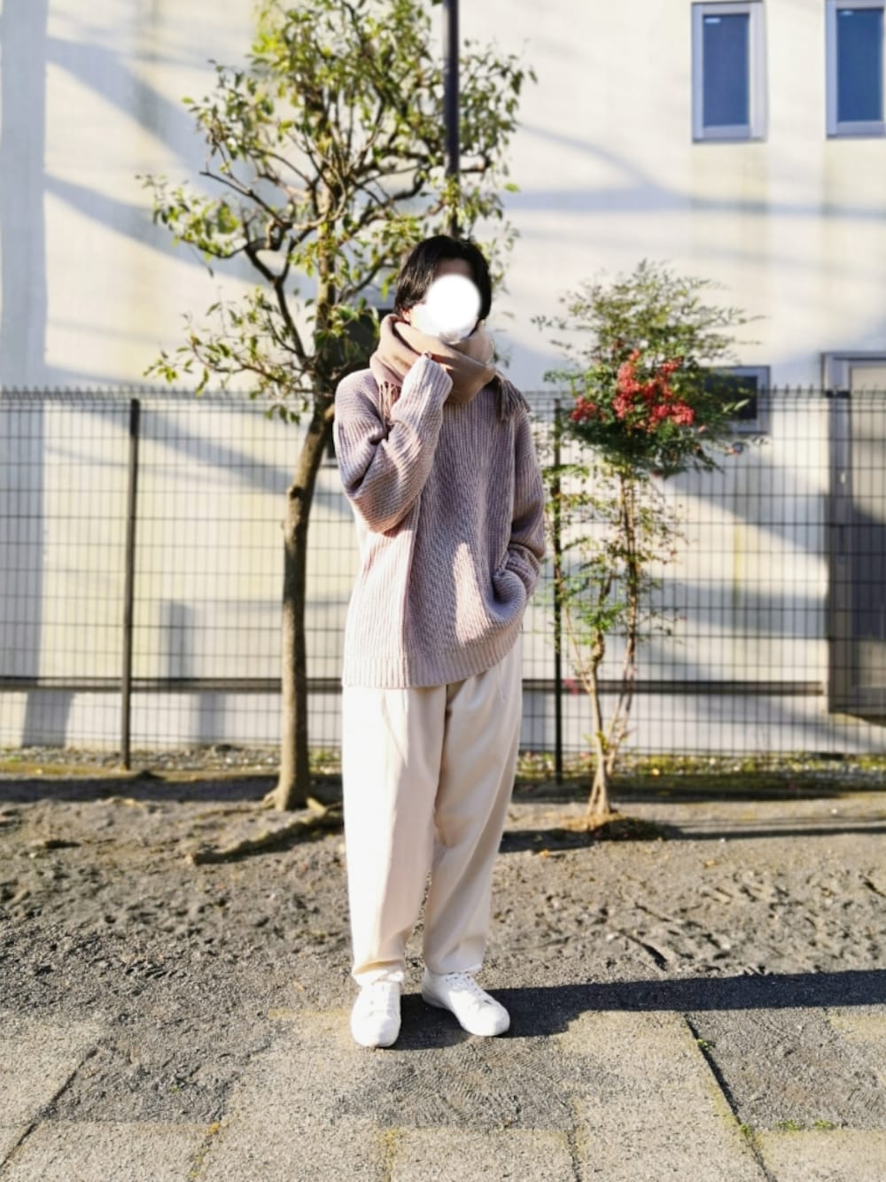 冬初めの17℃〜20℃に丁度いい ニット×マフラー合わせのゆるコーデ オーバーサイズニットは世界を救います✨