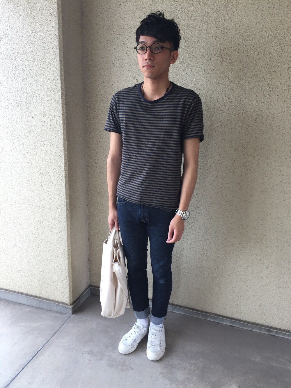 こんばんは!muuuです! 明日も暑いので熱中症注意です😱 今日はボーダー気分でしたので一味違う渋カラーを選んだボーダーコーディネートです!バッグと足もとを明るい色であく抜きしています!☕