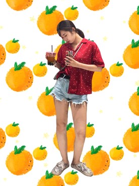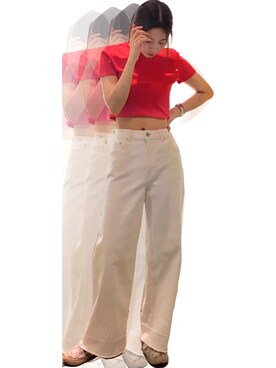 「齐地牛仔裤のアイテム(デニムパンツ、ホワイト系)」を使った、Redeo3さん(レディース)の夏コーディネート
