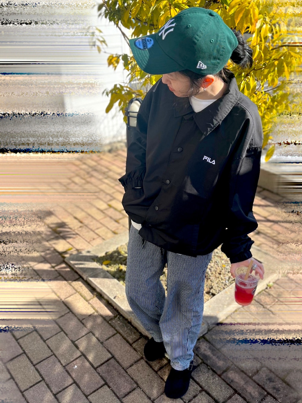 zooのナイロンジャケット「FILA/フィラ 別注 ビッグシルエット カレッジロゴ バック刺繍 バックプリントコーチジャケット/ナイロンジャケット」を使ったコーディネート