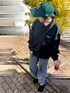 バックロゴとキャップの色味合わせ🦖🌿🥦 ただのデニムじゃつまらないかな〜と、ヒッコリーを投入 キャップはネイビーと迷って迷ってグリーンに! こっちにして良かった🤩