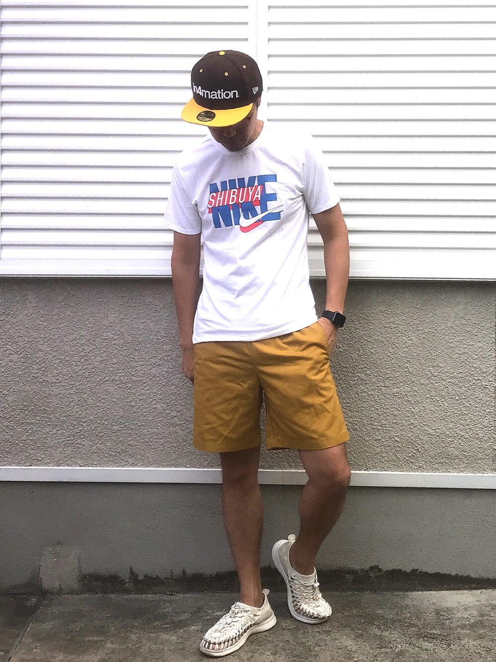 おはようございます いつもご覧いただきありがとうございます。いいね、お気に入り、フォローお願いします! Instagram→wear_zigro NIKEのTシャツ 渋谷 GUのショートパンツ かわいい keenのサンダル ユニーク IN4MATIONのキャップ
