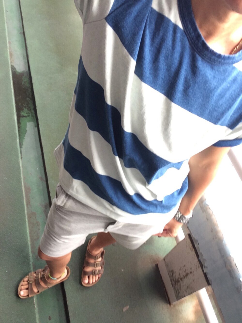 KAIのTシャツ/カットソー「INDIGO BORDER 半袖Tシャツ」を使ったコーディネート