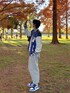 水元公園に紅葉見に行った時のコーデ! 青で統一しているとこがポイントかも