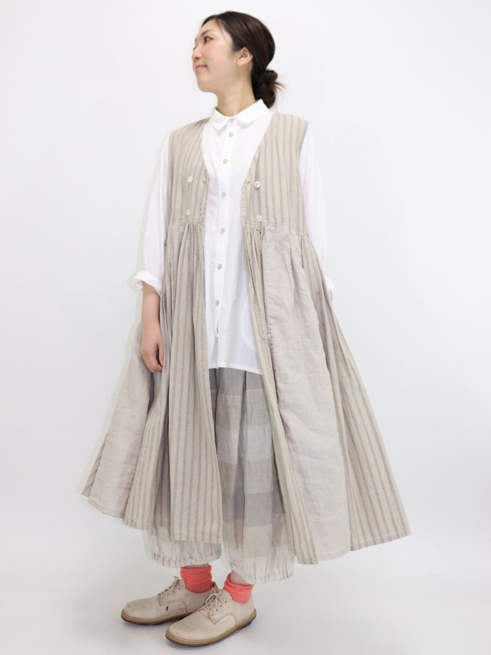 cotton house ayaより 前あきのジャンパースカートが 入荷しました。 ストライプと無地の生地が 組み合わさっています。 今回は同じ色のトーンの ワイドパンツを合わせてみました😊 ジャンパースカート 【cotton house aya】¥25920 ブラウス 【if coulage】¥18360 ワイドパンツ 【cotton house aya】¥23760