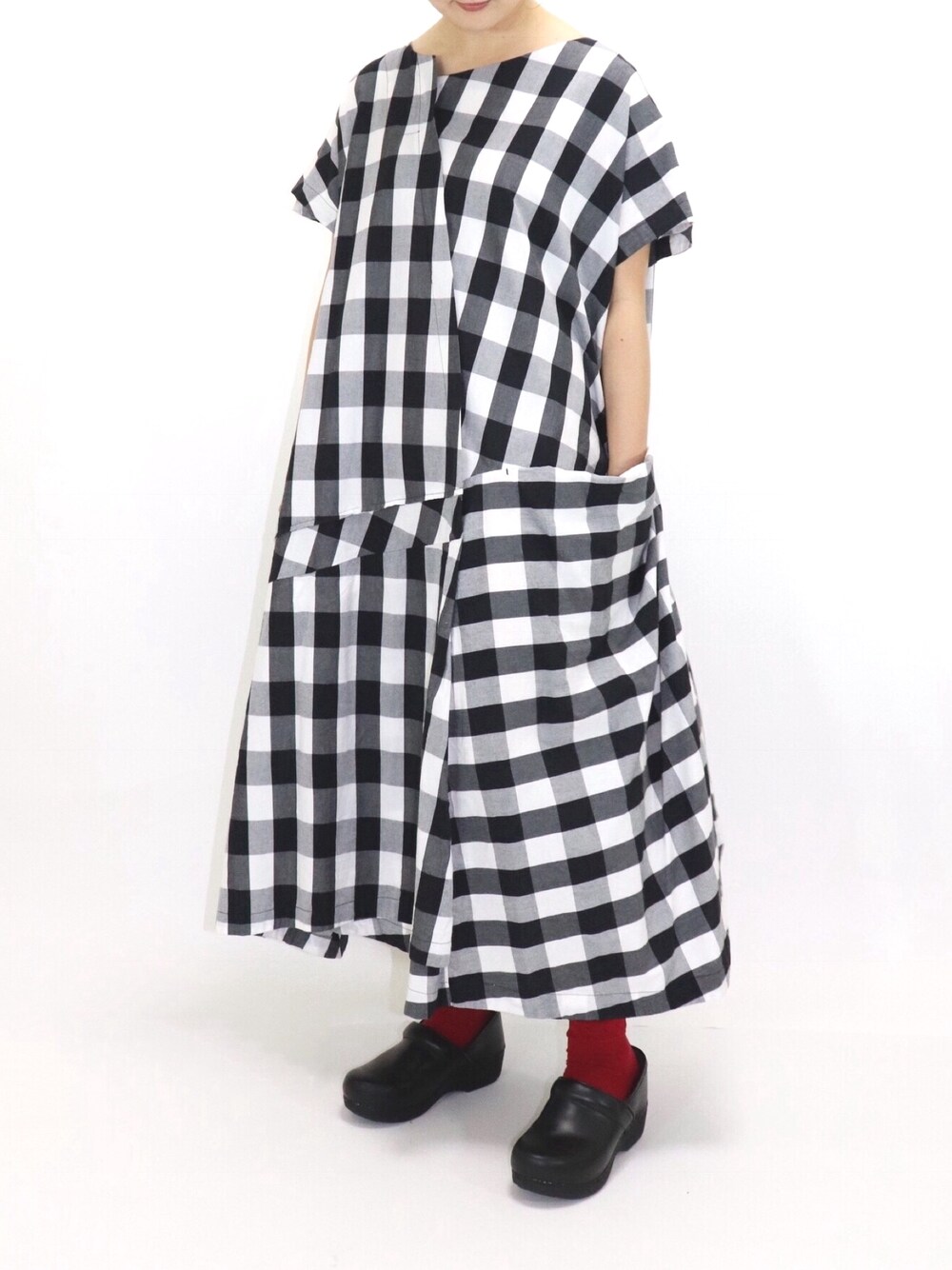 moyuruのゆったり着れるチェックのワンピースはいかがでしょうか😊 コーディネートが1枚で決まります。 靴下で赤色をプラスしてみました✨ ワンピース【moyuru】¥16416(sale)