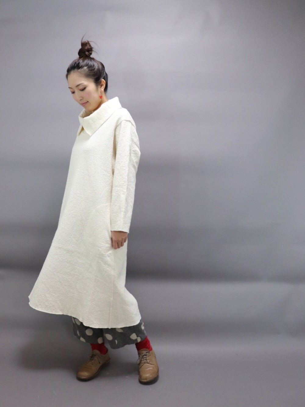 51coladdより、裏起毛のあたたかいワンピース入荷しました。 フェルトのようで、どこか幻想的なテキスタイルです。 裏起毛のワンピース【51coladd】¥28,080 ワイドパンツ【if coulage】¥25,920