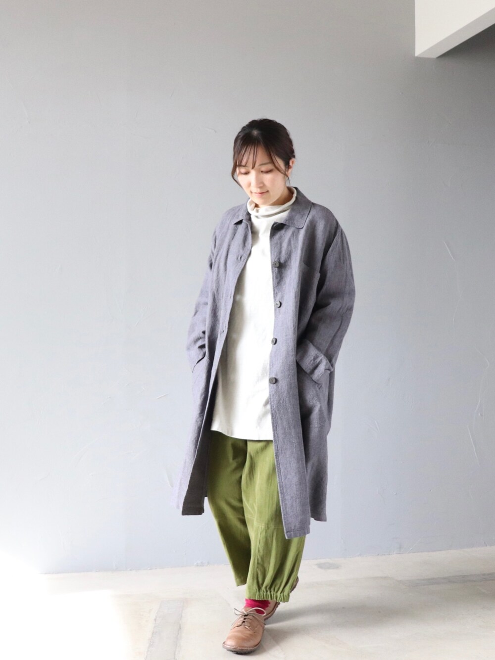 ショーウインドウは、いつも vol.024 そのときにある店頭の洋服で コーディネートしたものを お届けしています。 『ふらっと歩いてる街で ふと、ショーウインドウに 目を向けると』 そんなイメージで ご覧いただけましたら うれしいです。 ---------------------------- コート【coulage】¥31,900 ホッとする着心地の トロフィールチュニック【coulage】¥14,080〈sale〉 ワイドパンツ【atelier mine】¥14,960〈sale〉 (税込価格です) スタッフの身長 161cm 取り扱い店舗のご確認など、 お気軽にお問い合わせください😊
