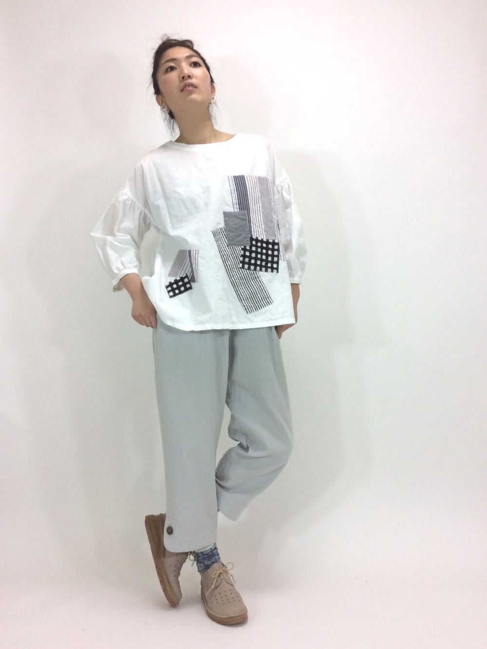 遊び心まんてんのブラウスと程よくワイドなパンツの組み合わせ。 ジャケットをまえあきではおったりしてもグ〜〜〜♪( ´θ`)ノさわやか〜っ(´∀`=)っ