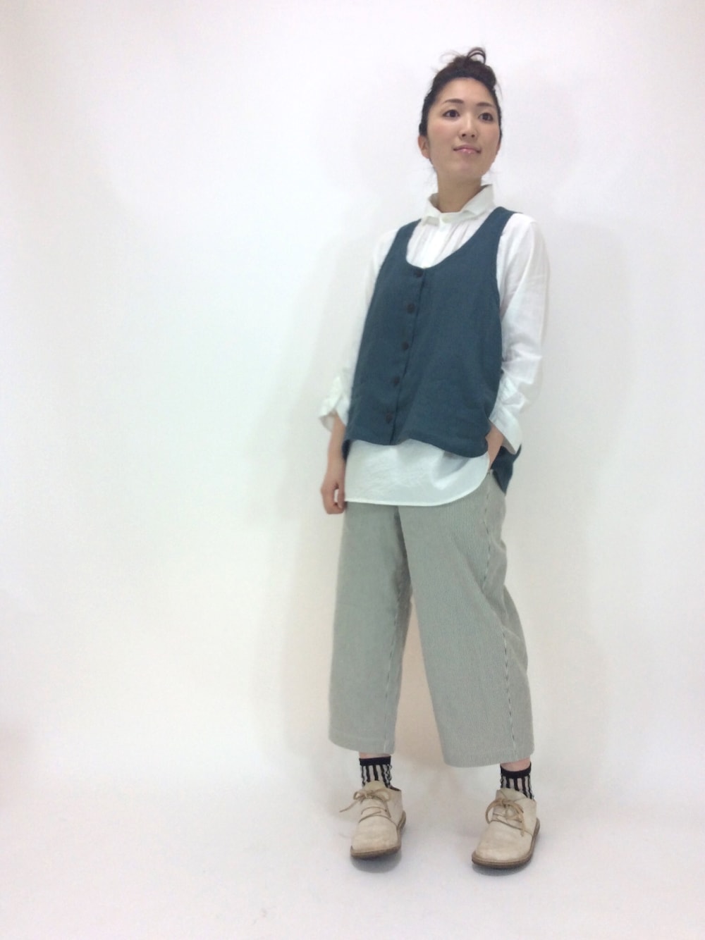 白シャツとベストとワイドパンツと。 シャツのえりの形がちょっとかわってるんです😌 ベストも柔らかい麻だからラクチン✨ ・ブラウス[co's] ¥17064 ・ベスト[if coulage]¥17280 ・ワイドパンツ[cotton house aya] ¥14040 (全て税込価格です)