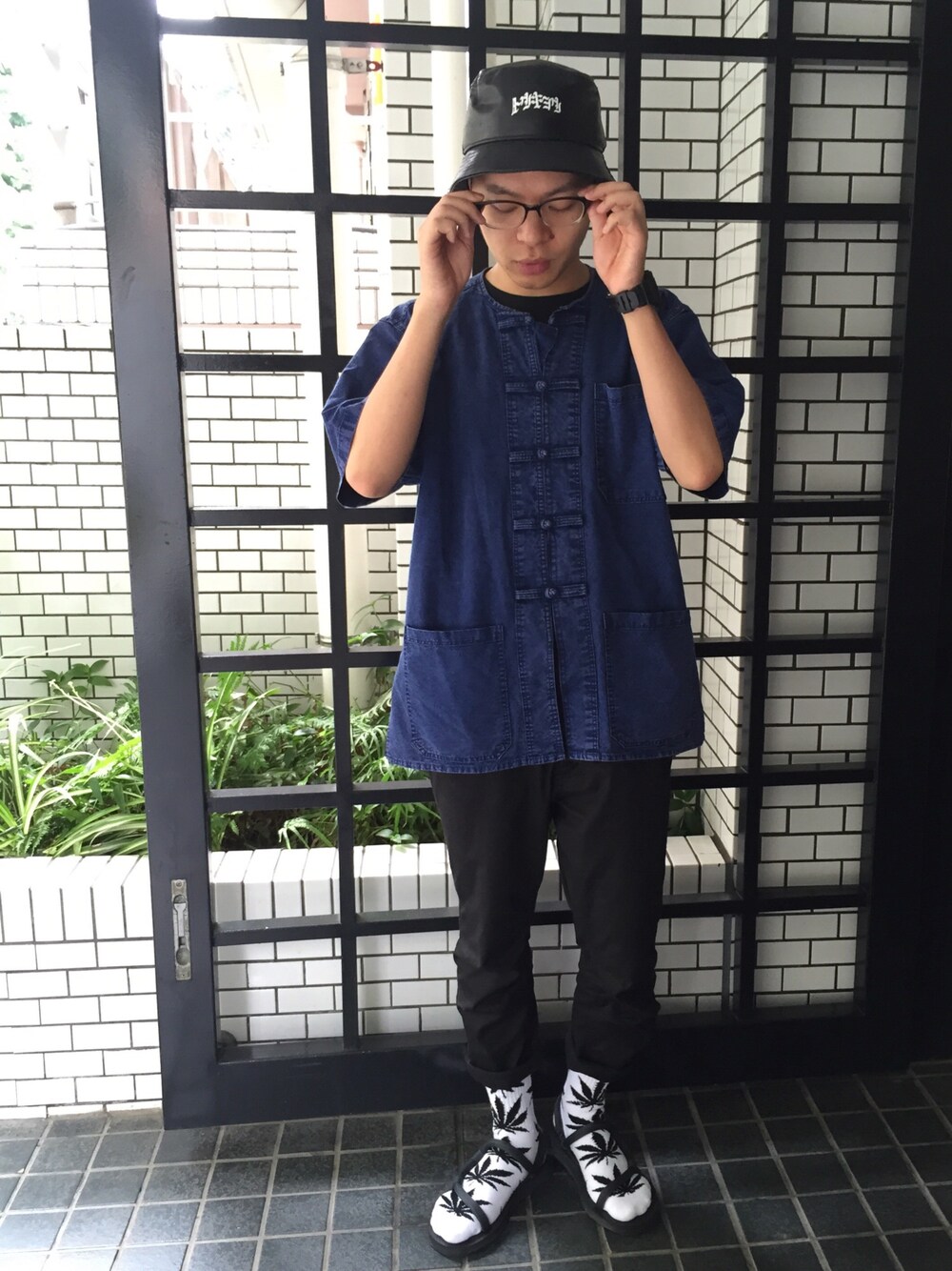 BOY TOKYOにて購入した、古着のデニム地チャイナシャツが気分にぴったり。 パンツはロールアップしてHUFの靴下チョイ見せからのスポーツサンダルが近場に出掛けるには丁度良いっす。
