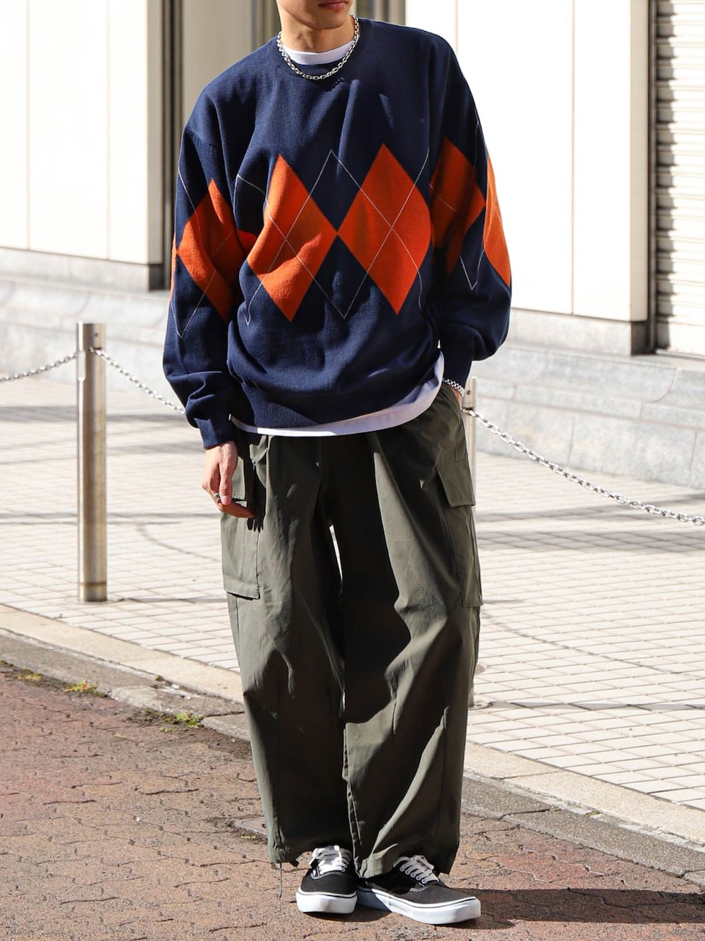 ジャガードアーガイル柄ニットセーター【ユニセックス】を使ったコーデです! オリジナルブランド【ZIP FIVE】より、ジャガードアーガイルニットセーターが登場。 アーガイル柄が落ち着いた大人な雰囲気を漂わせます。 デイリーに使いやすいデザインで、幅広いアイテムとコーディネートしやすいアイテムです。 オフィシャルInstagramやTwitterにて最新情報や限定情報を毎日更新中! Instagram:zipfive.official