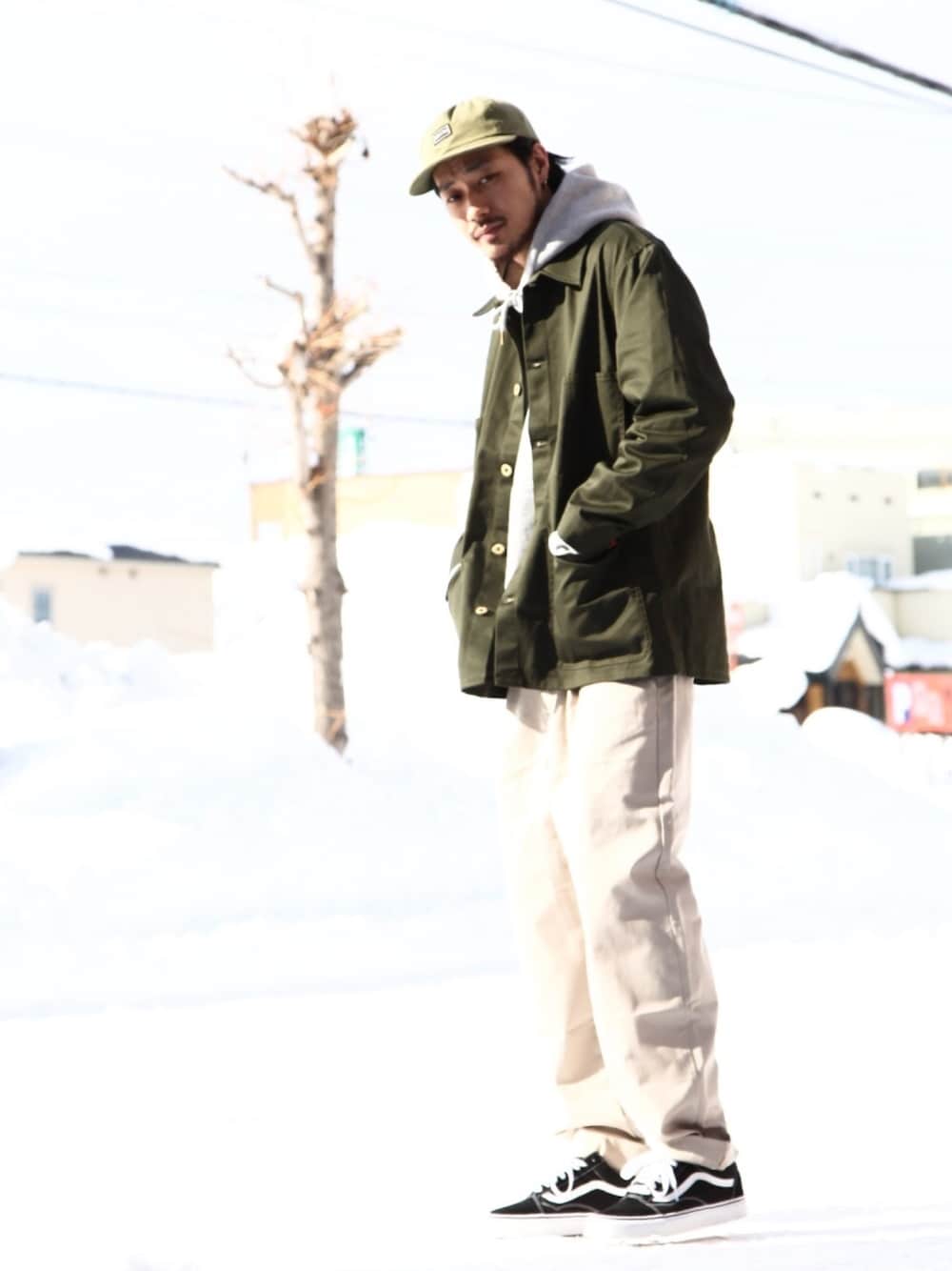 KONのキャップ「BRIXTON STRAPBACK CAP JONAS ARMY」を使ったコーディネート