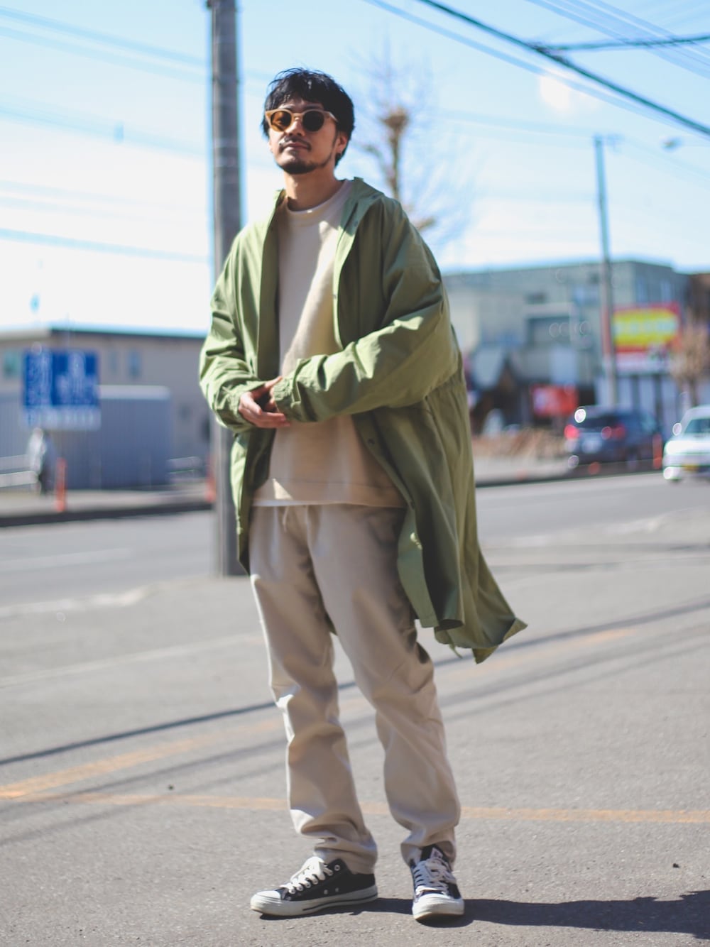 KONのモッズコート「M-65 ビッグシルエット リメイクスタンドモッズコート」を使ったコーディネート