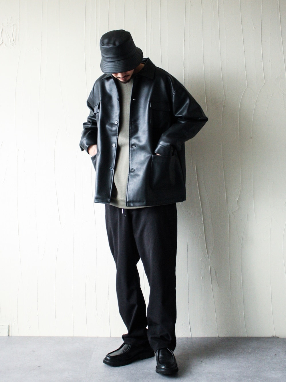 ご覧頂きありがとうございます! レザーバケハとレザーシャツコーデ インナーはカーキのスウェットを 合わせました! コーデの参考になれば嬉しいです!