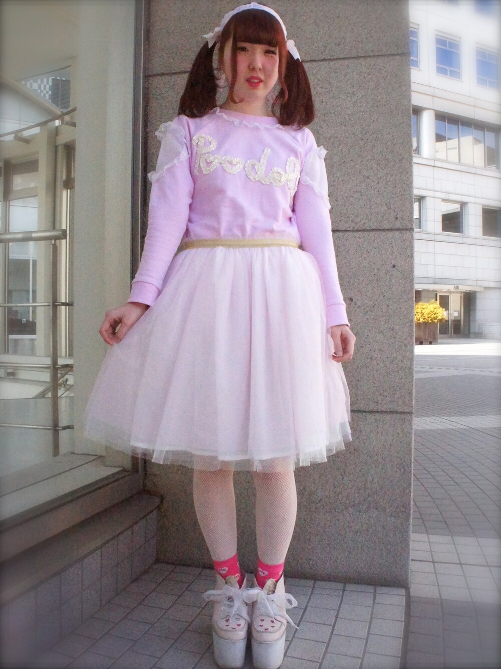 【Zipperスナップin文化服装学院】 トップス:swankiss 約1万800円 チュールラメスカート:swankiss 約8600円 カチューシャ:swankiss 約2500円 リボンをつけてリメイク 靴下:WEGO 約350円 靴:swankiss 約1万5000円 いちごのリング:スイマー 約200円 【木村葉月ちゃん/19/ファッション流通科】