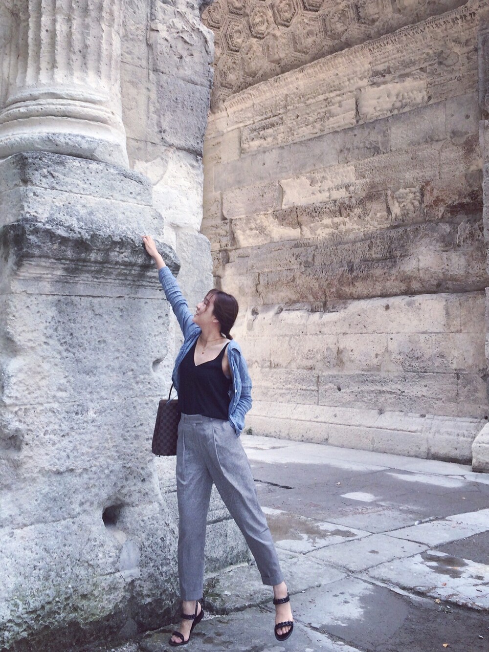 The silk fabric of pants and the cotton fabric of the top are very soft. Besides, the colors of top and pants perfectly match. Both of them are cold tone, which give me a cool feeling in this extremely hot summer.
