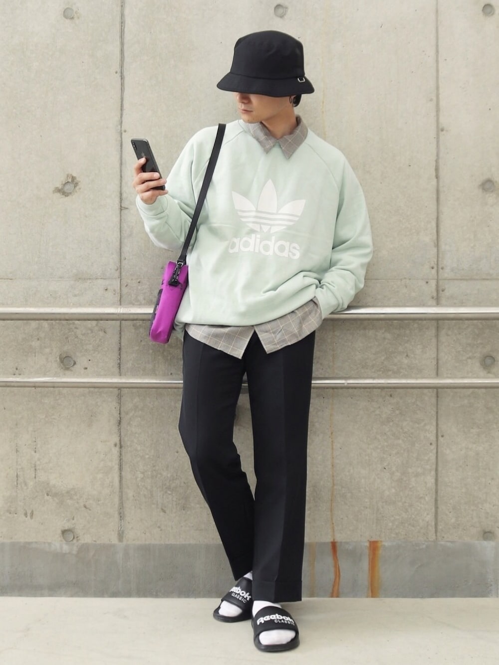 #リーボックラブ #平成最後のWEARISTAセンバツ Code.13 Instagram ➡︎ ____s_i_n____ プロフィールから飛べます✈️ 👉size スウェット L シャツ S パンツ 0 👉point 春色のスウェットにパープルでアクセント。 合わせてみて気づいたけど、チェックシャツも意外に合いますね。 頭の中の想像と違う結果になる事があるからファッションは面白いですね〜。