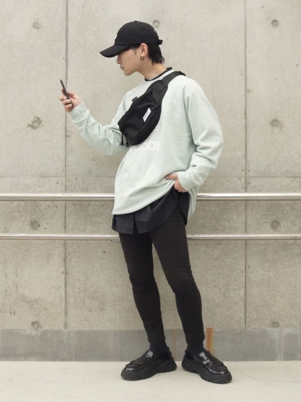 Instagram ➡︎ ____s_i_n____ プロフィールから飛べます✈️ 👉 size スウェット L シャツ フリー パンツ 42 👉 comment 春色トップス🌸 小物系は黒で統一してちょいモード感。 スポーティ仕上げと見せかけて足元ローファー。 このウエストポーチはコスパ最強💸 スキニーパンツは自分の体型変化を確認するためにたまに履きます笑