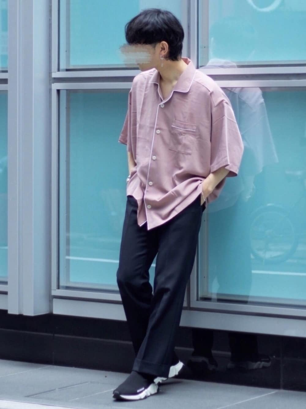 心のシャツ/ブラウス「ビッグシルエット ポリパイピング オープンカラー パジャマシャツ」を使ったコーディネート