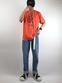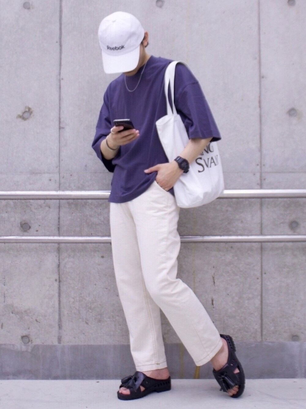 #夏だ!Tシャツ着よう! TシャツといえばUNIQLO。 今回はホワイトデニムと合わせました。 上下ともレディース。 なので、こう、足をくねっと した訳ではなく、たまたまですよ🤧 👉 instagram ➡ ︎ ____s_i_n____ 👉 size Tシャツ レディースL パンツ レディースM 👉 point ホワイトデニム × ダークネイビー でクリーンに。 白パン一個あると便利やなぁ