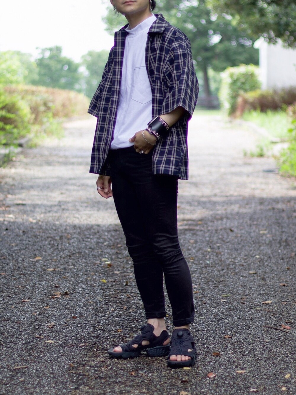 #夏だ!Tシャツ着よう! 👉 instagram ➡ ︎ ____s_i_n____ 👉 size シャツ S Tシャツ M パンツ 42 👉 point 半袖チェックシャツいい感じ🙋♂️ 1,000円クーポン出てるみたい🤤