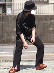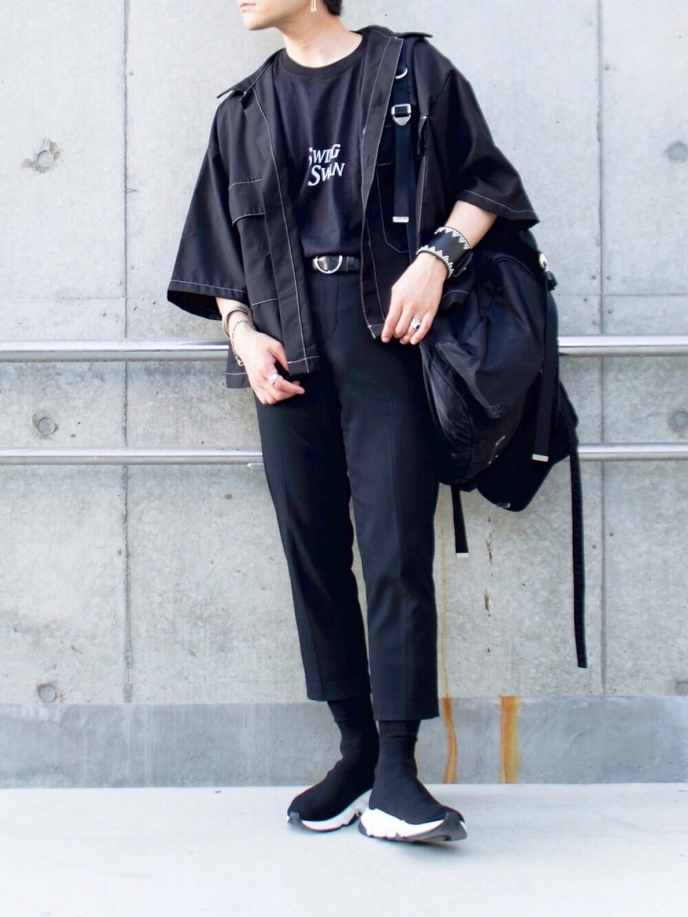 #夏だ!Tシャツ着よう! オールブラックは 素材や艶感で差を。 👉 instagram ➡ ︎ ____s_i_n____ 👉 size Tシャツ XL パンツ レディースL 👉 point ところどころに白とかシルバーを配置して、のっぺり感を無くすことでメリハリつけてます🤤