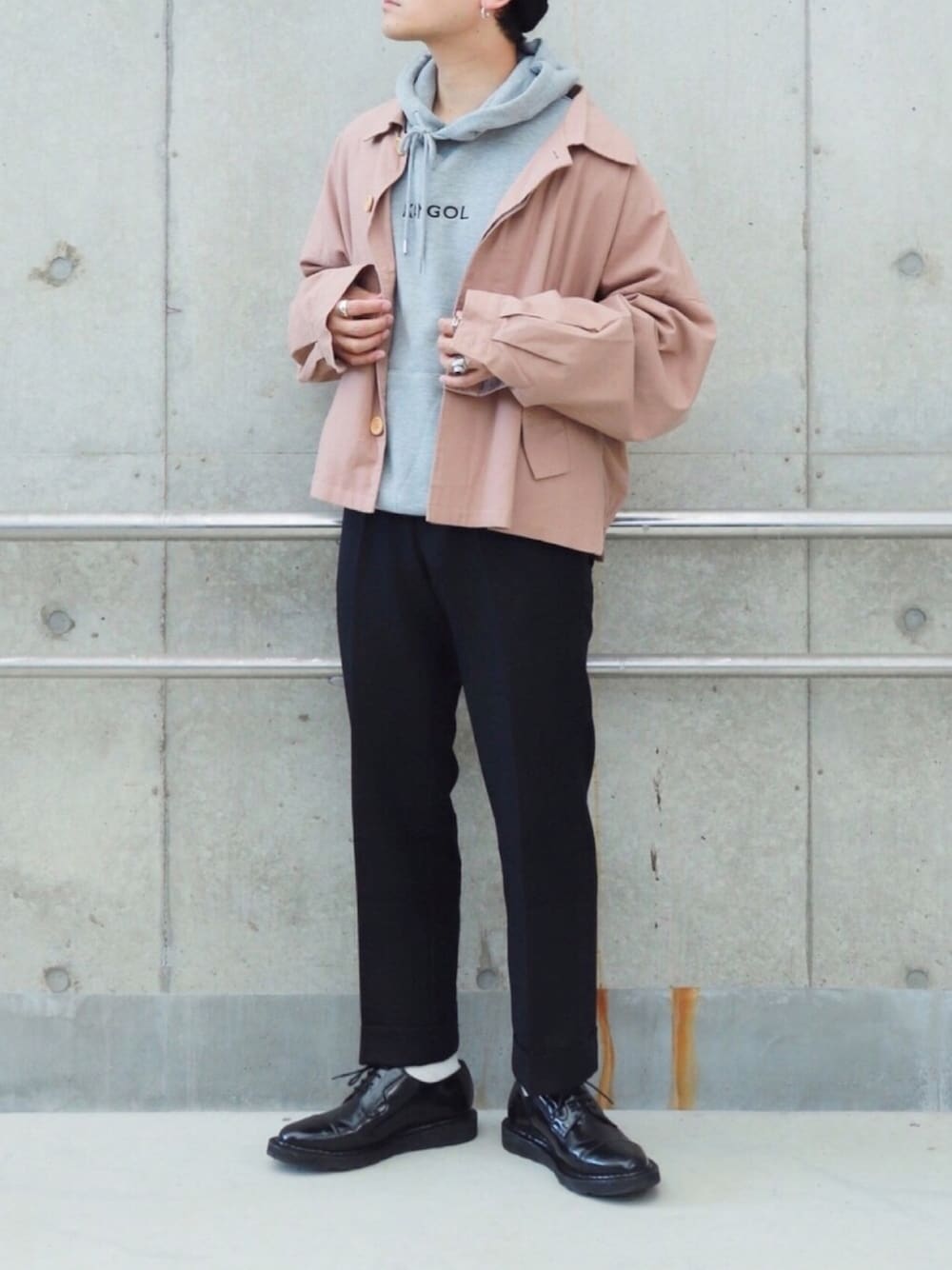 Instagram ▶︎ ____s_i_n____ ピンクとグレー。 パーカーの紐は結ぶべし。 足元はドレスシューズで締める、的な。