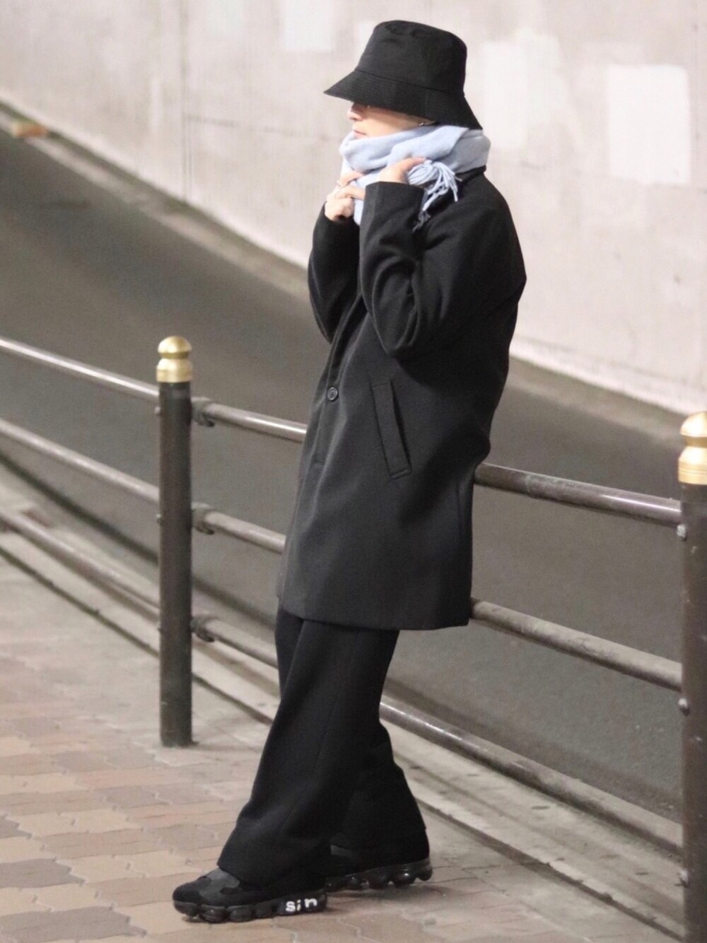 Instagram ▶︎ ____s_i_n____ オールブラックな不審者スタイルを一変させる水色マフラー🧣